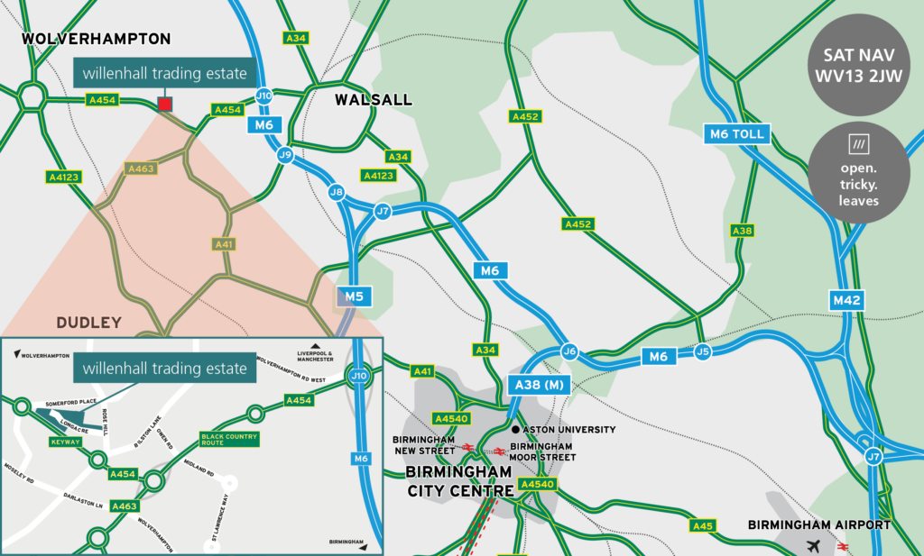 The well-established Willenhall Trading Estate is situated off Midacre, which connects to Longacres via Rose Hill. Junction 10 of the M6 is just two miles distant and accessed via the Key Way (A454) and the Black Country Route providing access to the national motorway network. Local occupiers include AF Blakemore, Middleton Paper, DX Network Services, Yodel, Tesco, Staples, Autoworld and Poundland. Close local amenities include Lidl, The Range and Willenhall Town Centre.